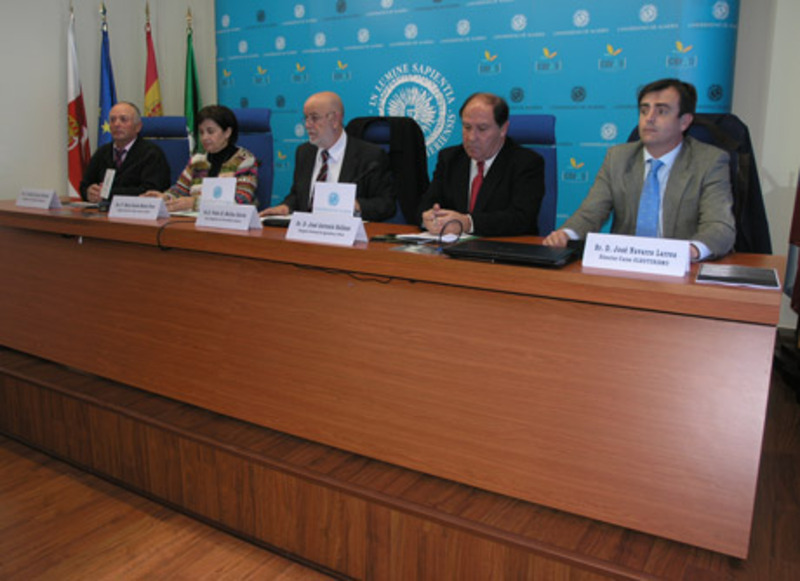 La Universidad de Almería acogerá la semana que viene (los días 21 y 22) el primer curso de oleoturismo que se celebra en la provincia y que está dirigido, por una parte, a profesionales del sector oleoturístico y, por otra, a alumnas y alumnos del Grado de Turismo de la UAL. Almería no es una gran potencia en la producción de aceite de oliva (cuenta con 19.000 hectáreas y tiene una producción anual de 50.000 toneladas), pero, sin embargo, sí es un referente en calidad, como así señalaba esta mañana el delegado provincial de Agricultura, José Antonio Salinas, que ha participado en la presentación de este curso junto con el rector de la UAL, Pedro Molina, la delegada provincial de Turismo, Comercio y Deporte, María Dolores Muñoz, el presidente de la Asociación de almazaras de Almería, Rafael García, y el director del curso, José Navarro.