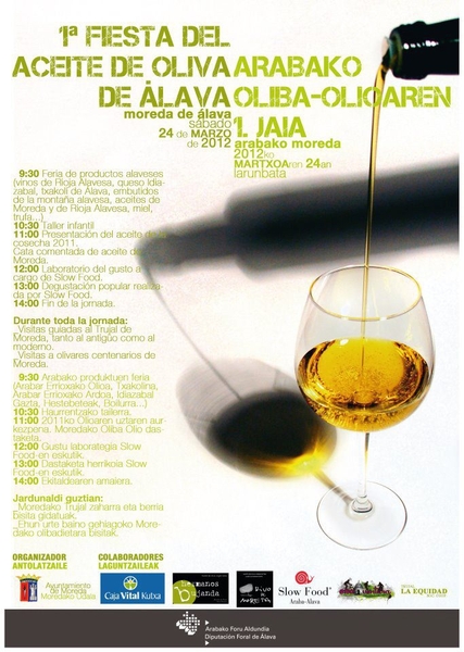 El sábado 24 de marzo se celebra la 1ª Fiesta de exaltación del Aceite de Oliva Alavés en el que se presentara la nueva añada de esta joya de la dieta mediterránea.
